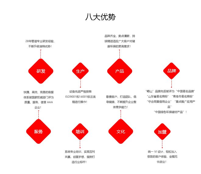 靑島嶗山管業科技有限公司坐落于中國美麗的海濱旅游城市一一靑島。公司三十年來主要從事塑料管道生產、研發、銷售為一體的高新技術環保企業。先后榮獲“中國著名品牌”、“山東省著名商標”、“靑島市著名商標”、“守合同重信用企業”、“專精特新”、“青島名優產品”等榮譽。